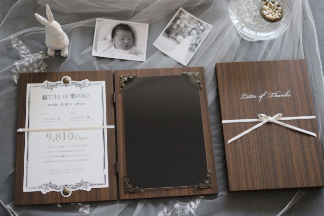 幼い頃のお写真&前撮りなどのお写真を添えても。