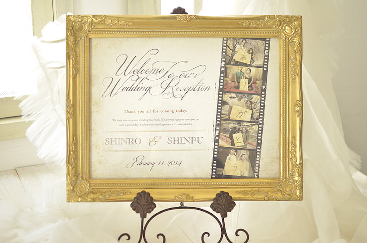 ゴールドの豪華なアンティーク風フレームのウェルカムボード・横型