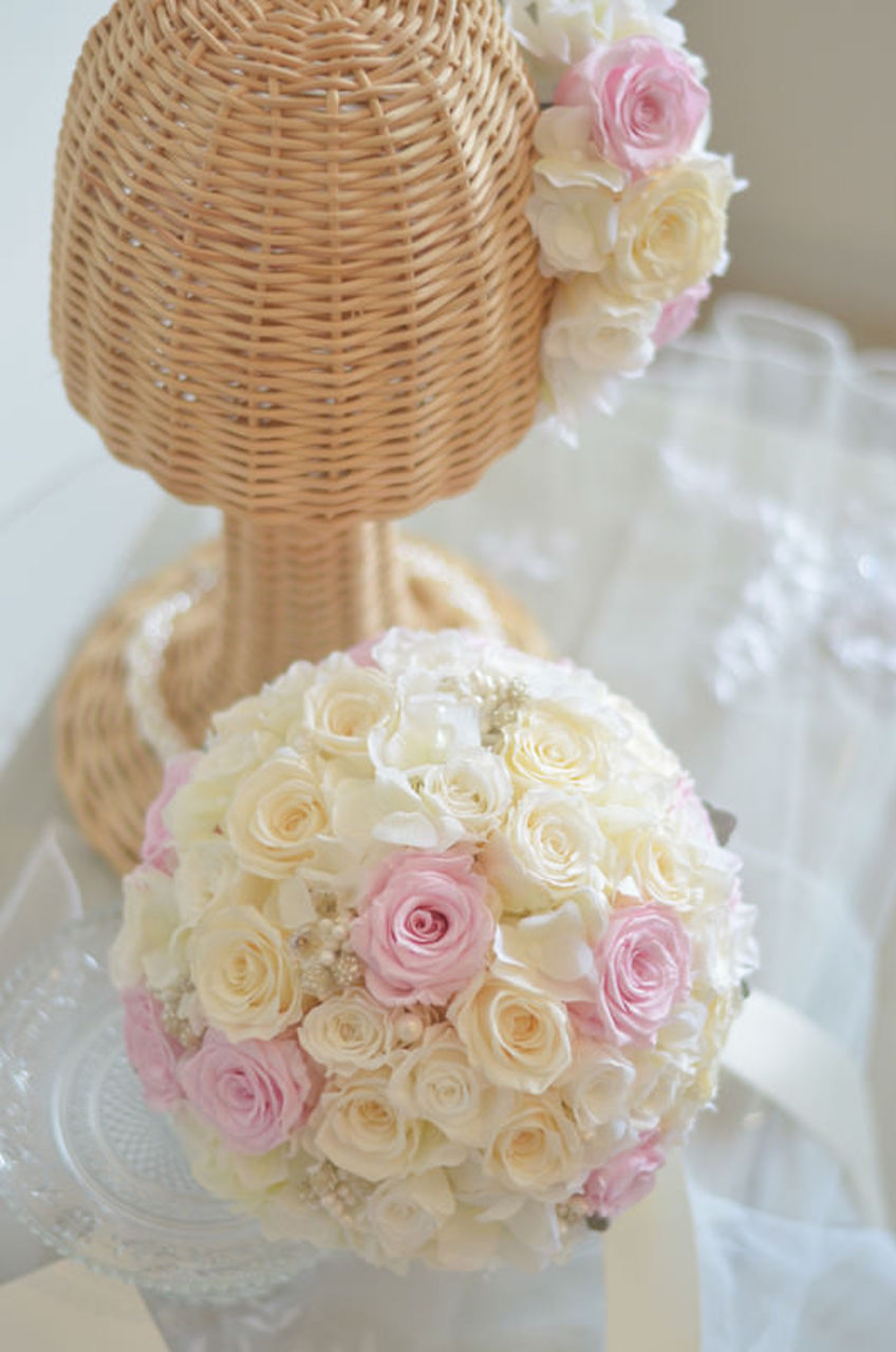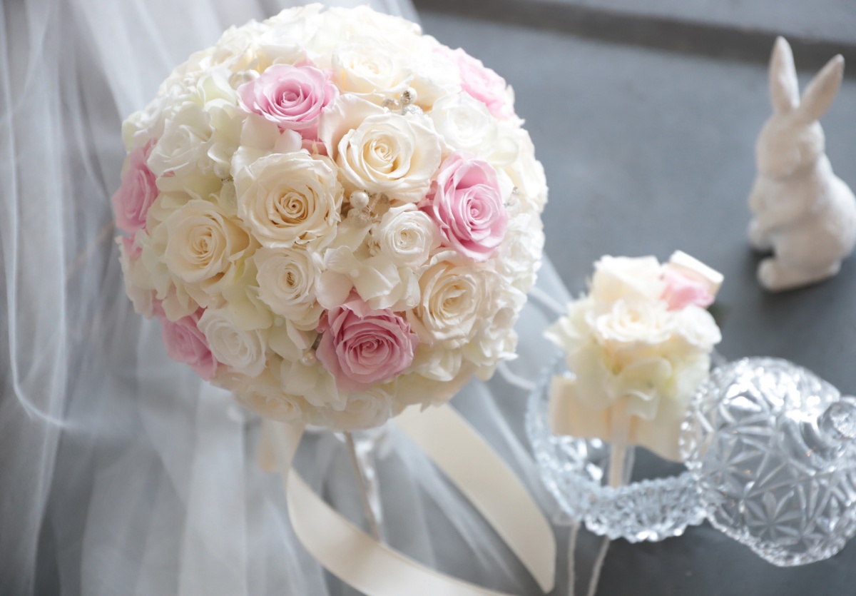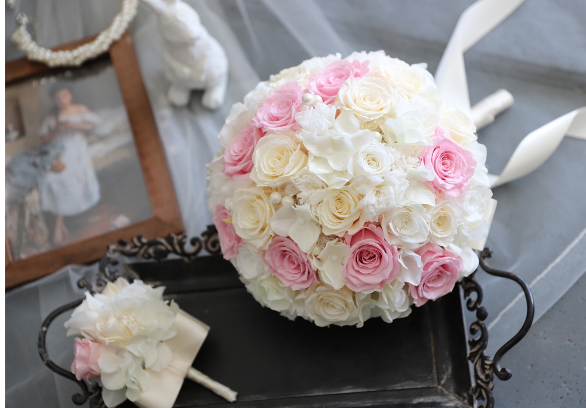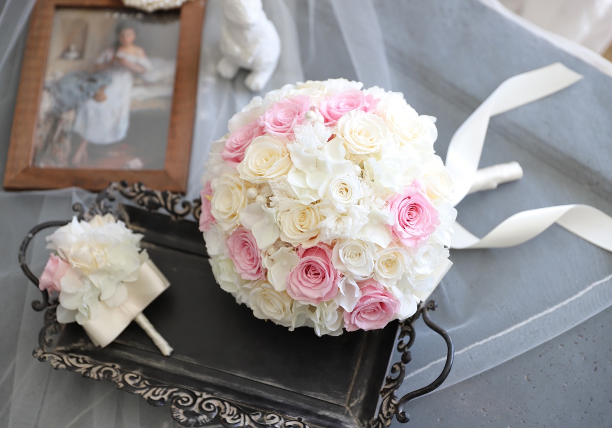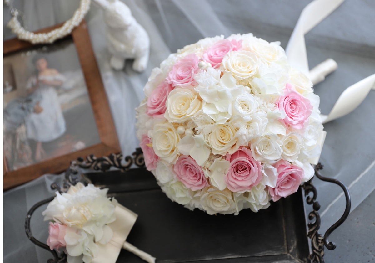 ピンクとホワイトのスウィートな色合いのミックスカラーブーケ♪