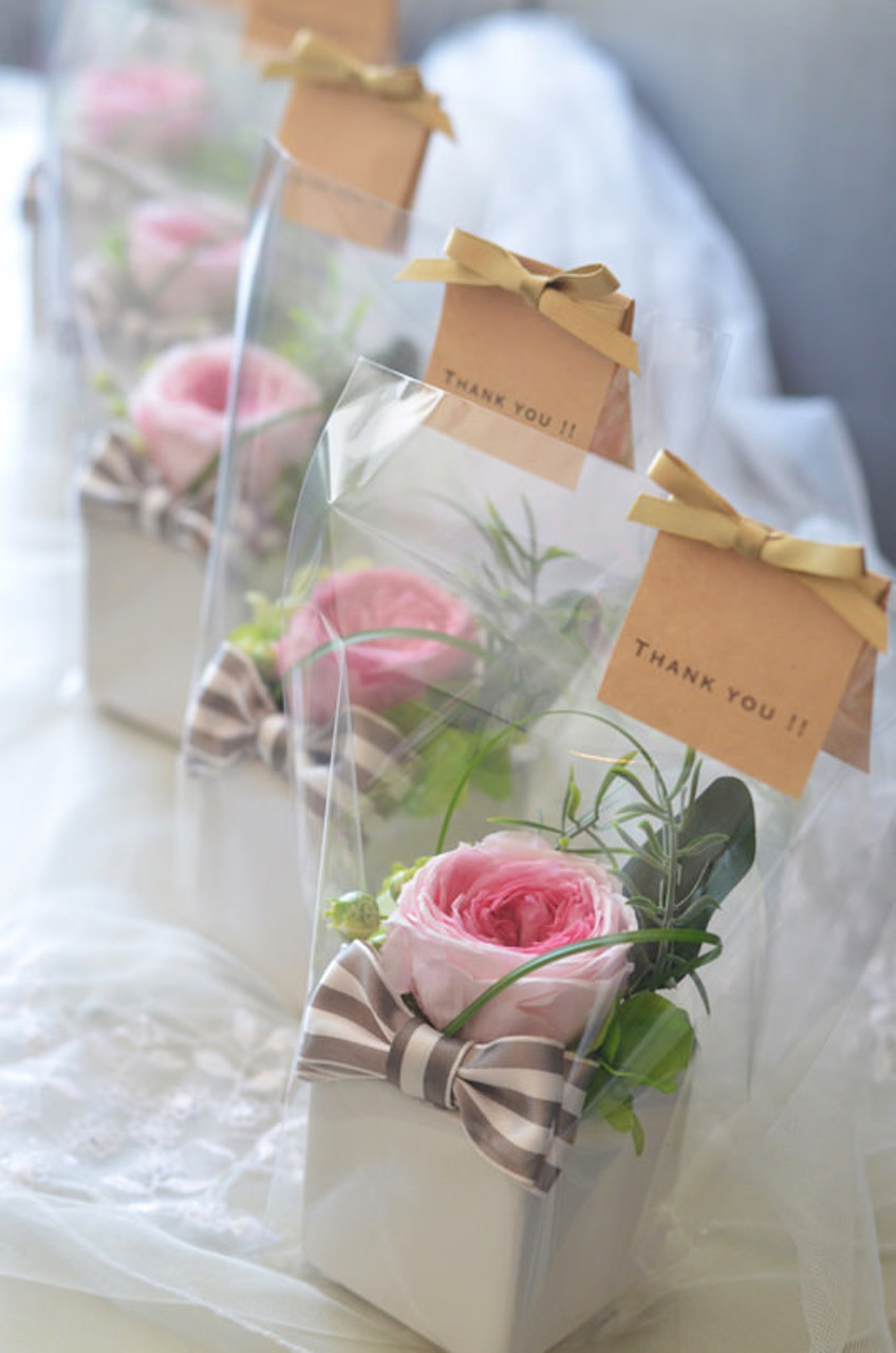 ギフト商品はそのままプレゼントできるように、ラッピングをしてお届けしています。ウェディング商品も一部を除いてリボンなどで装飾します。包装紙による目隠しはいたしません。