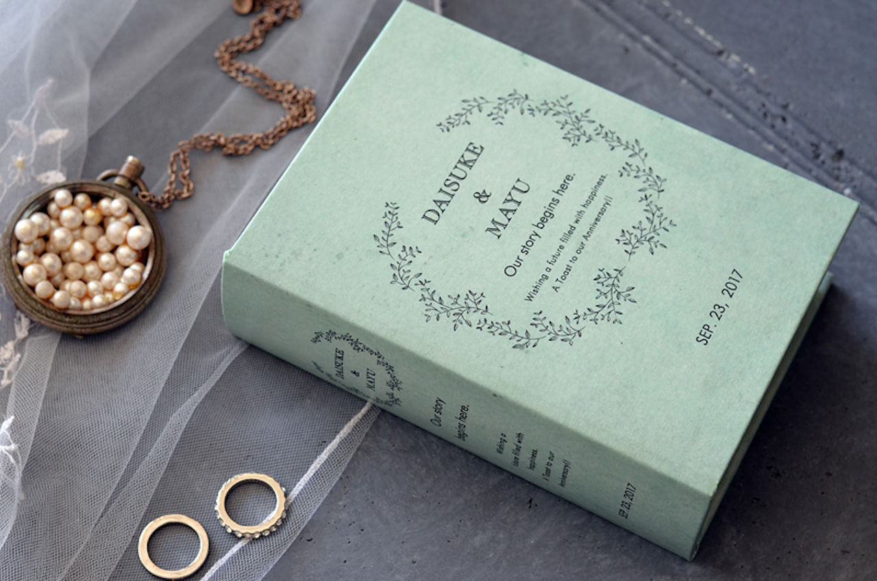 名入れブックボックスのリングピローと結婚証明書 - 人気のグリーン