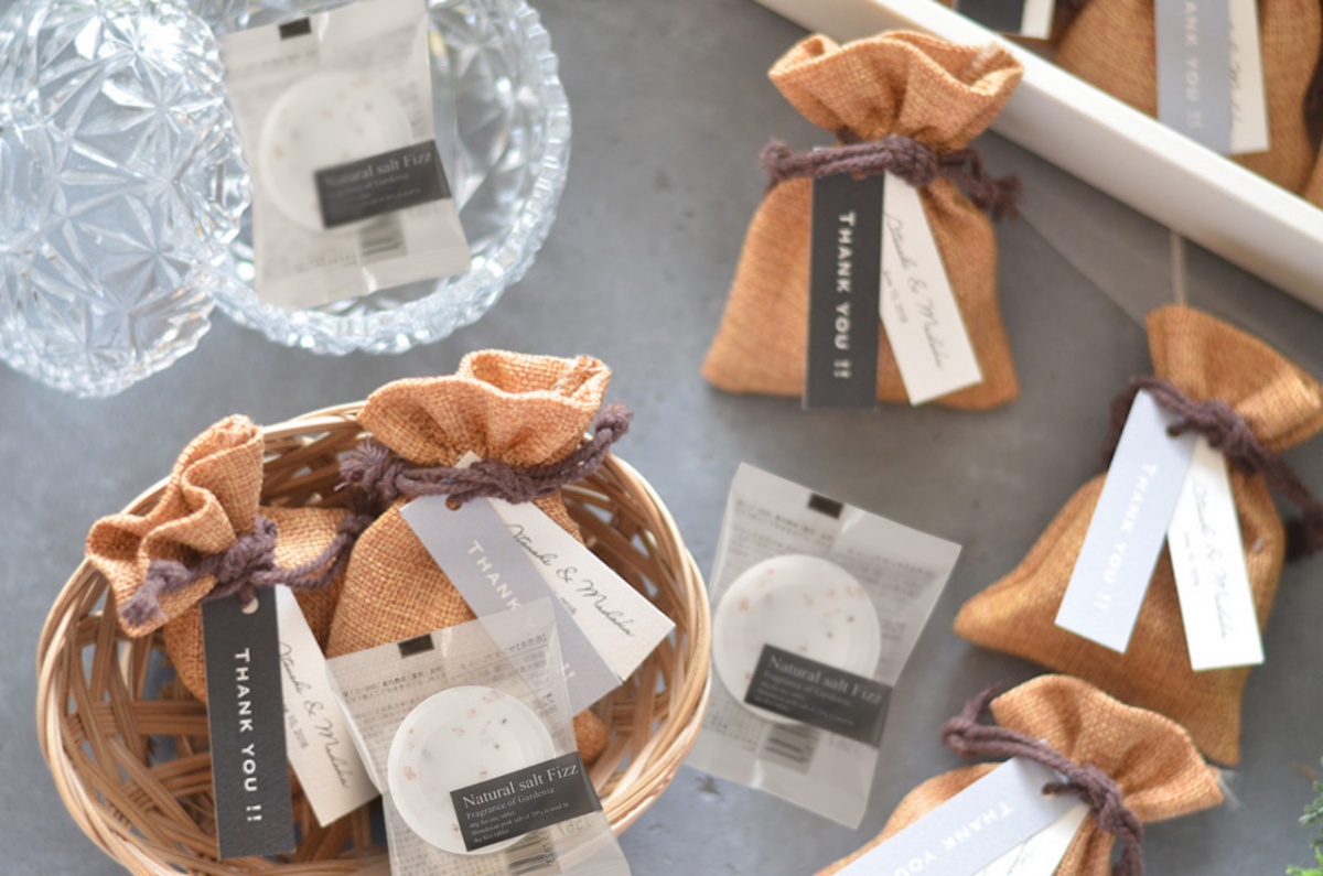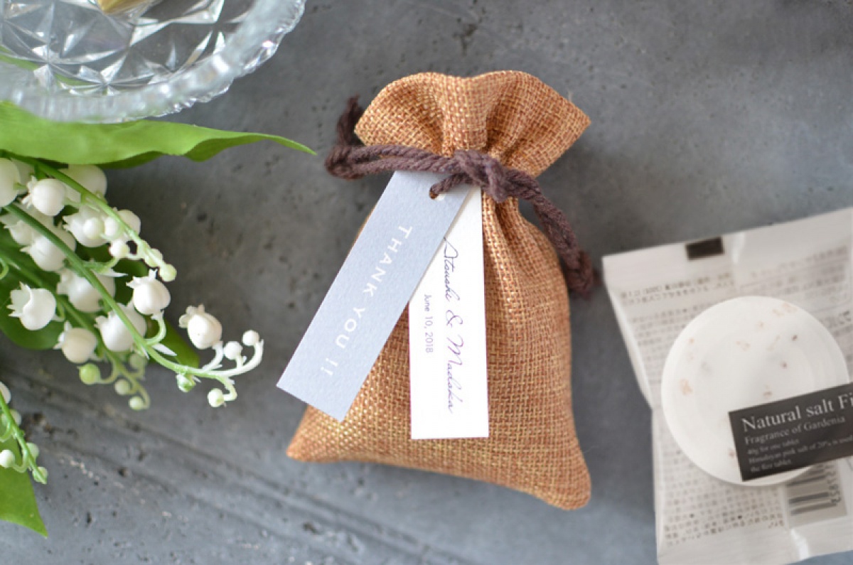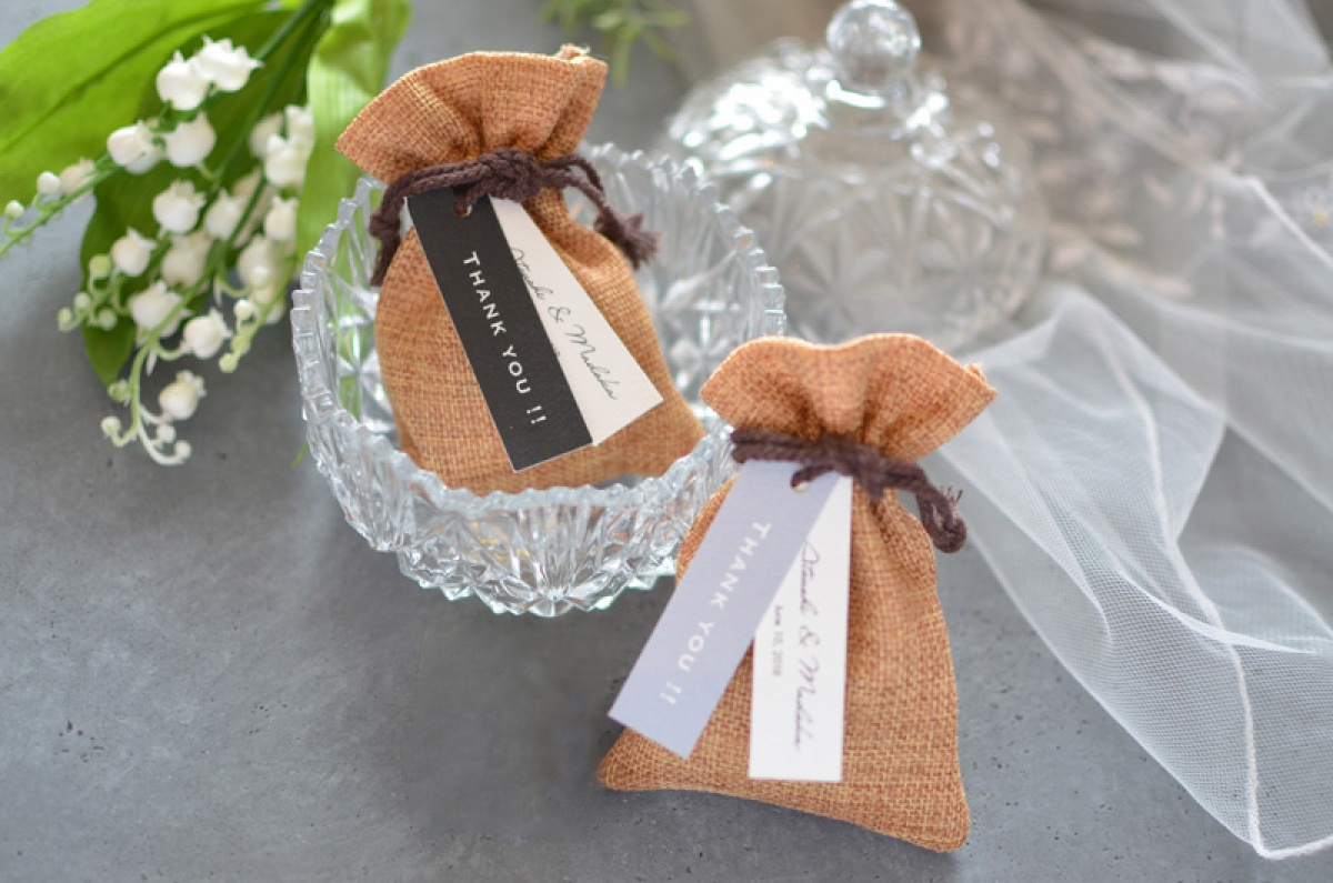 結婚式のプチギフト/ミニ巾着袋とネームタグ(60個セット)