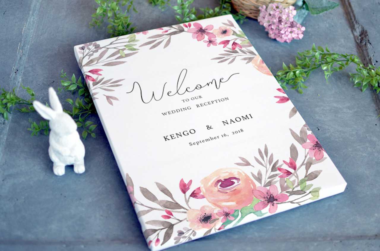 キャンバス生地に大人可愛い華やかなイラストが北欧風なウェルカムボード