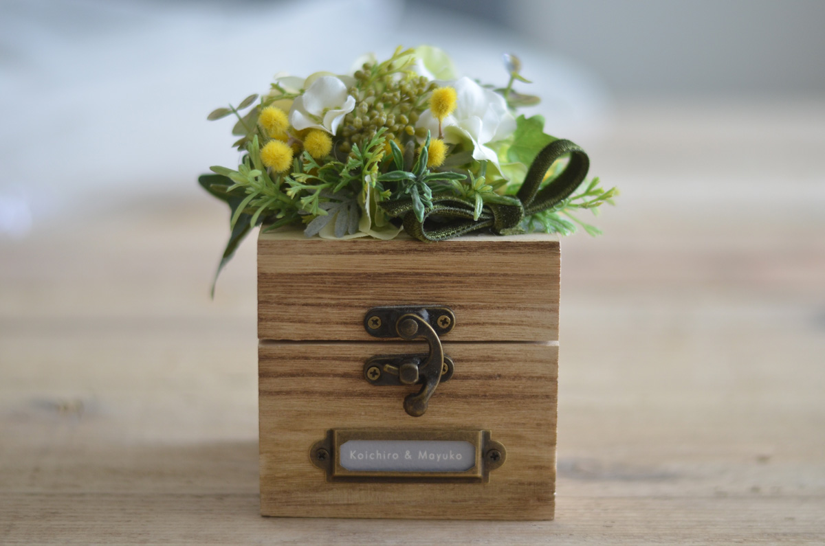 木箱とお花のリングピロー/ボンヌ・ナチュラル