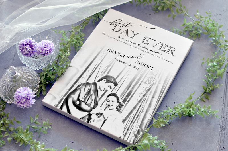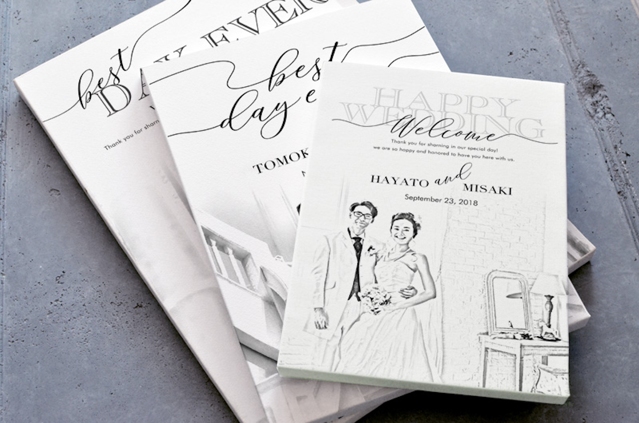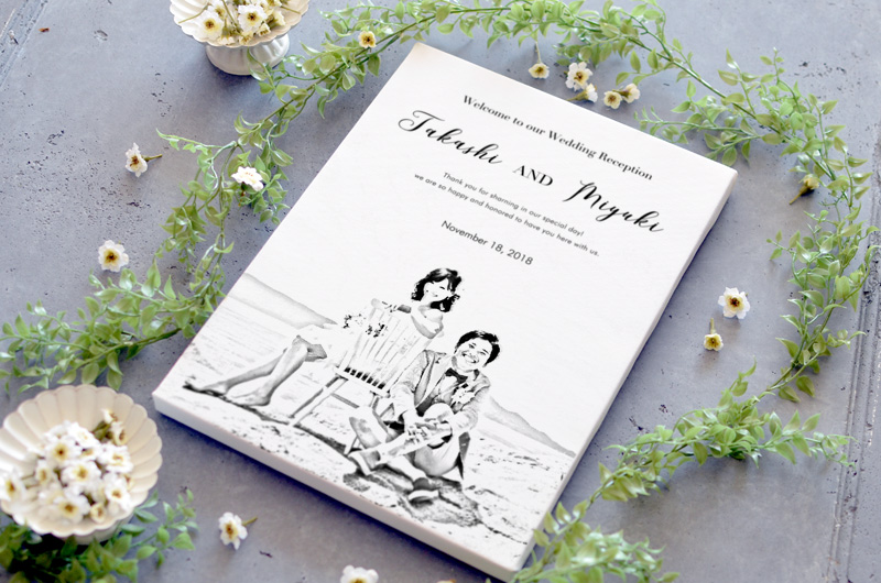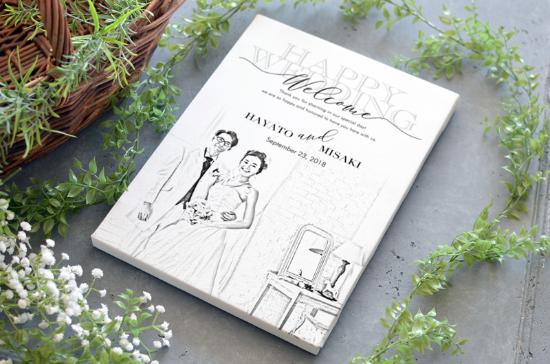 木炭画デッサン風の似顔絵ウェルカムボード