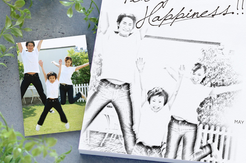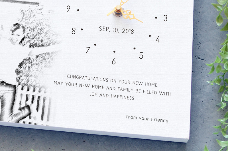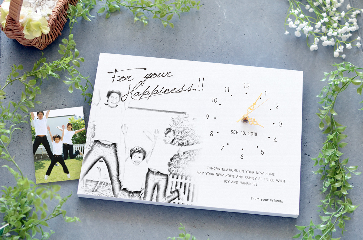 新築祝いに写真をイラスト加工した記念の時計をプレゼント