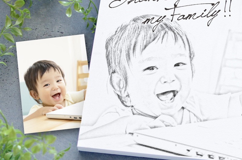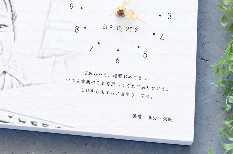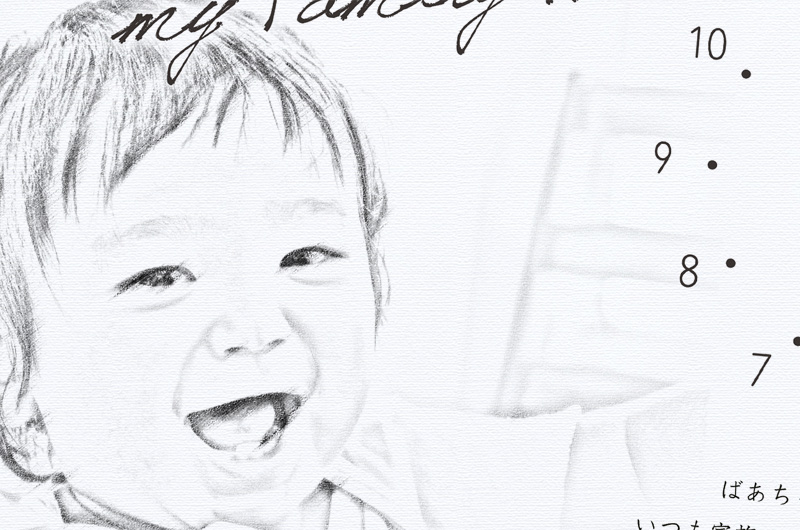 孫の写真をイラスト加工した記念の時計をプレゼント
