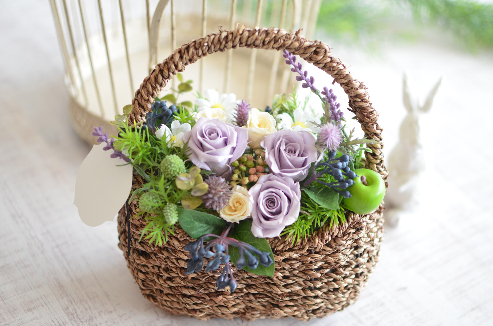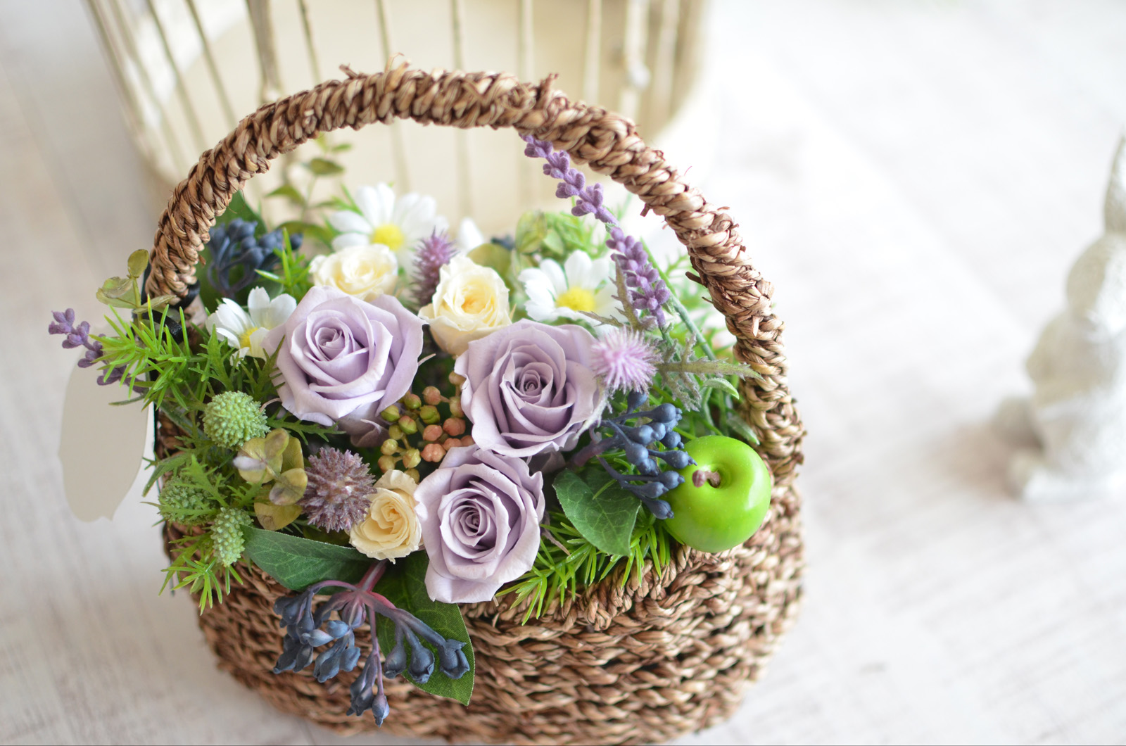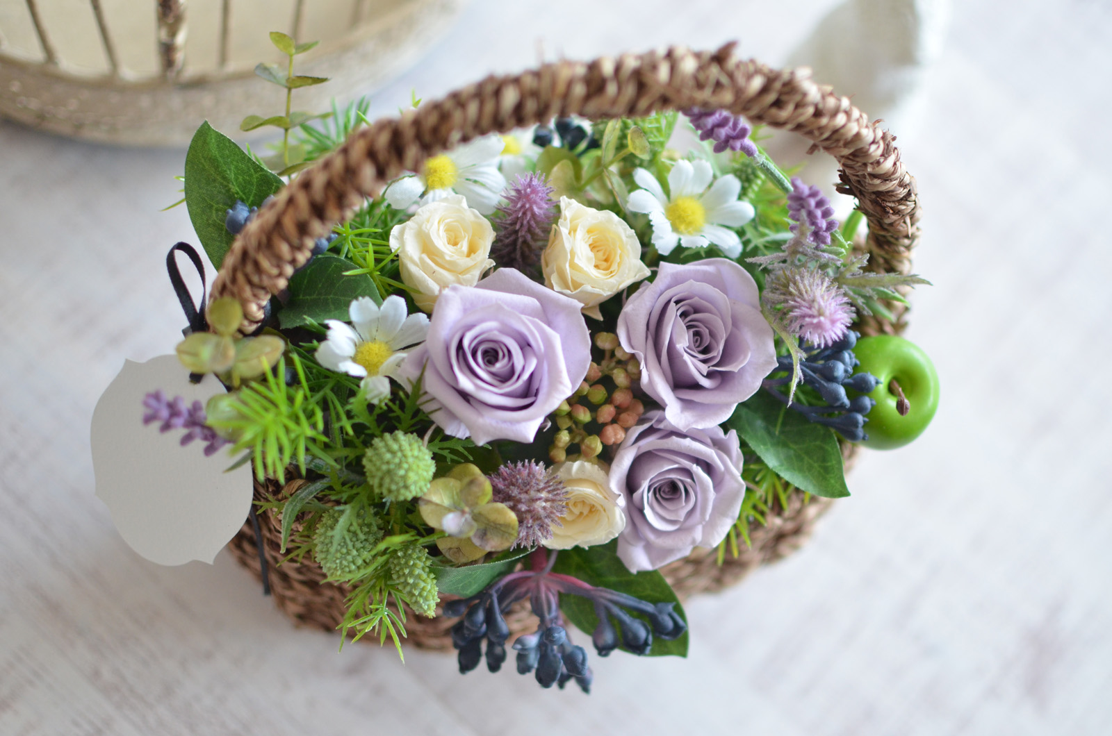 祖父母へのプレゼント、還暦古希や開店退職の祝いに人気の贈りもの・バスケットフラワー