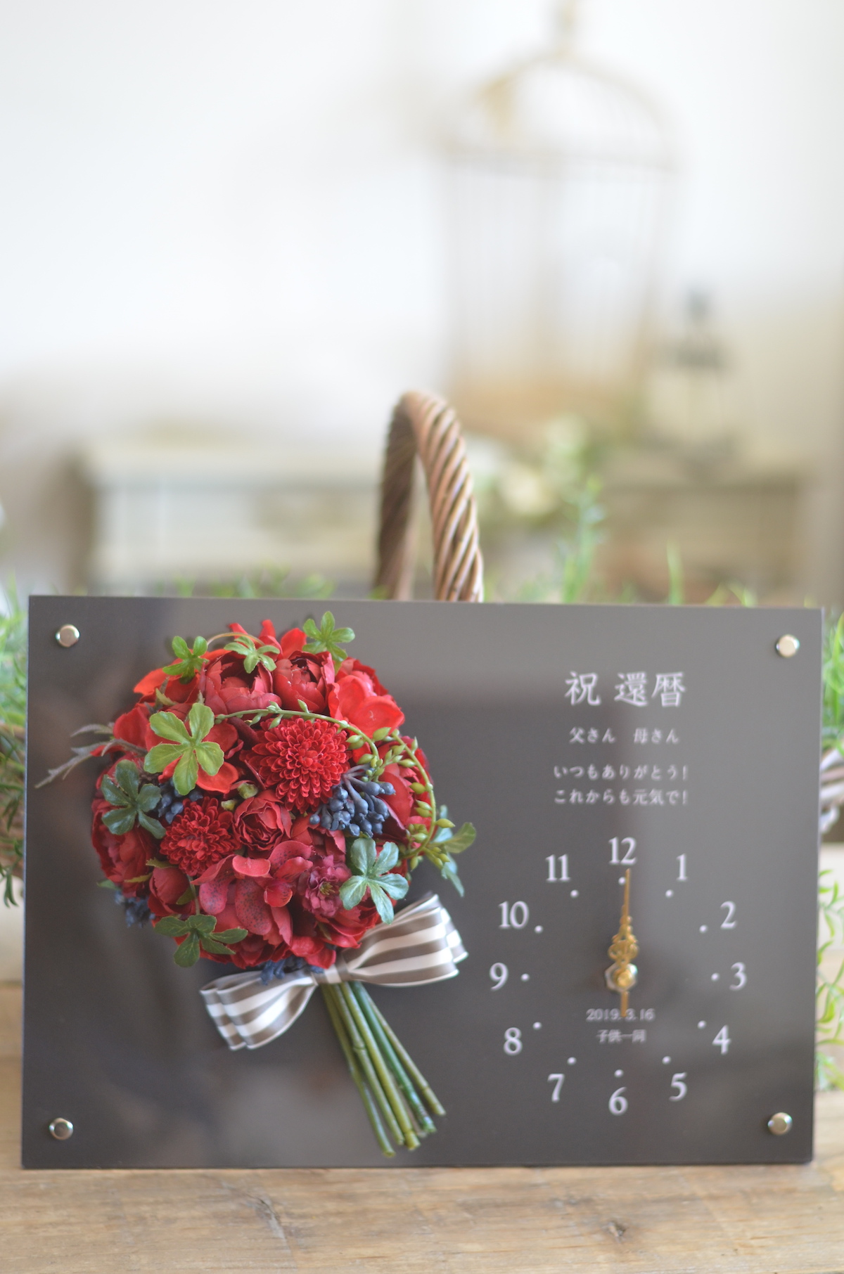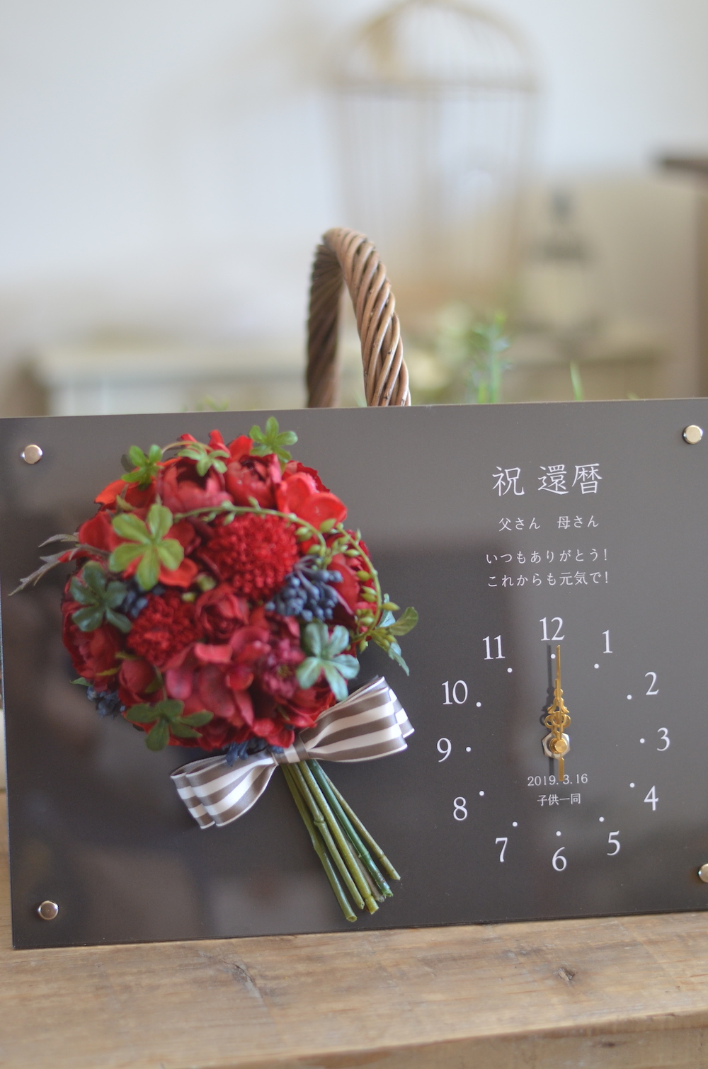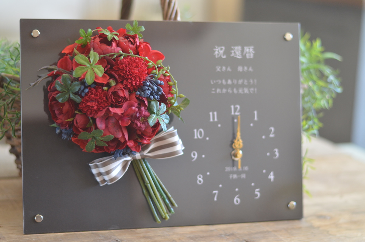 還暦祝いのプレゼントに!メッセージ入りのブーケの花時計