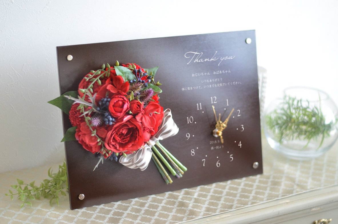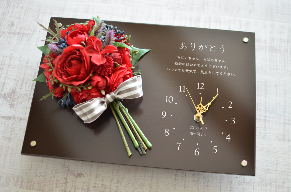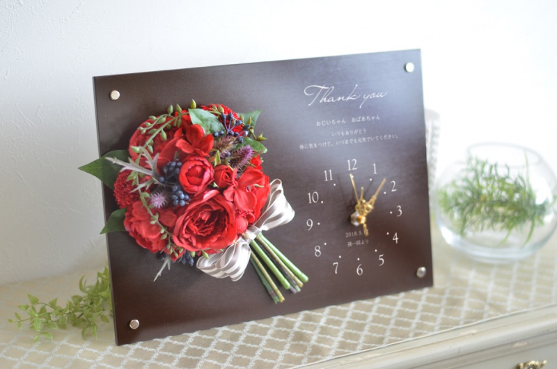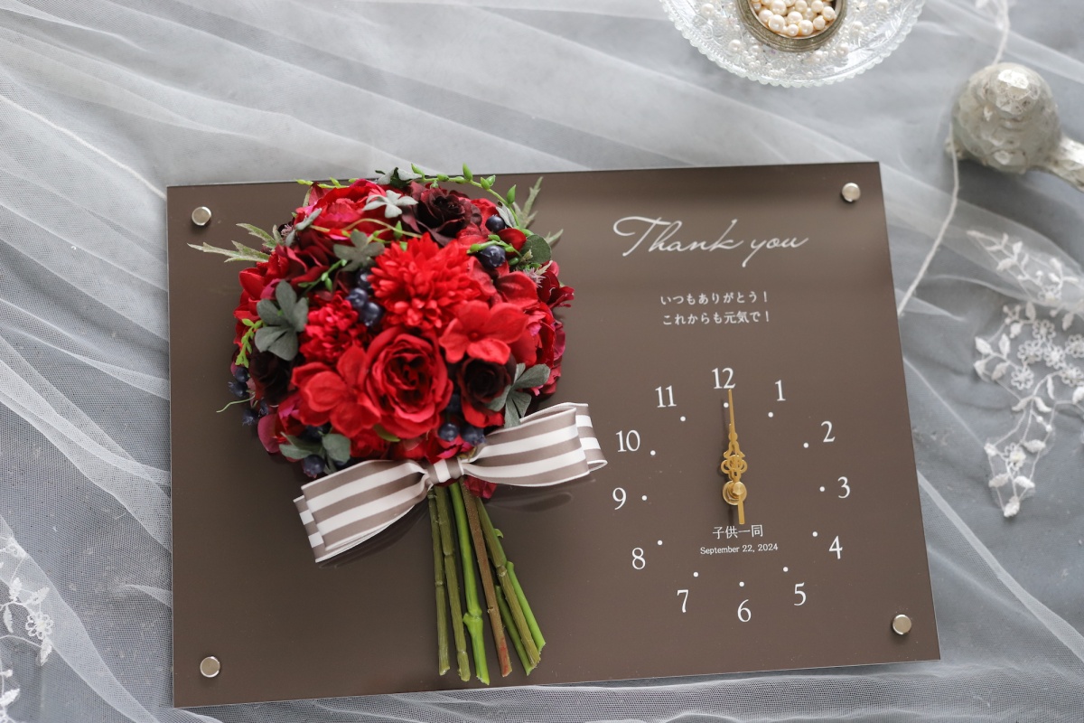 還暦祝いのプレゼントに!メッセージ入りのブーケの花時計