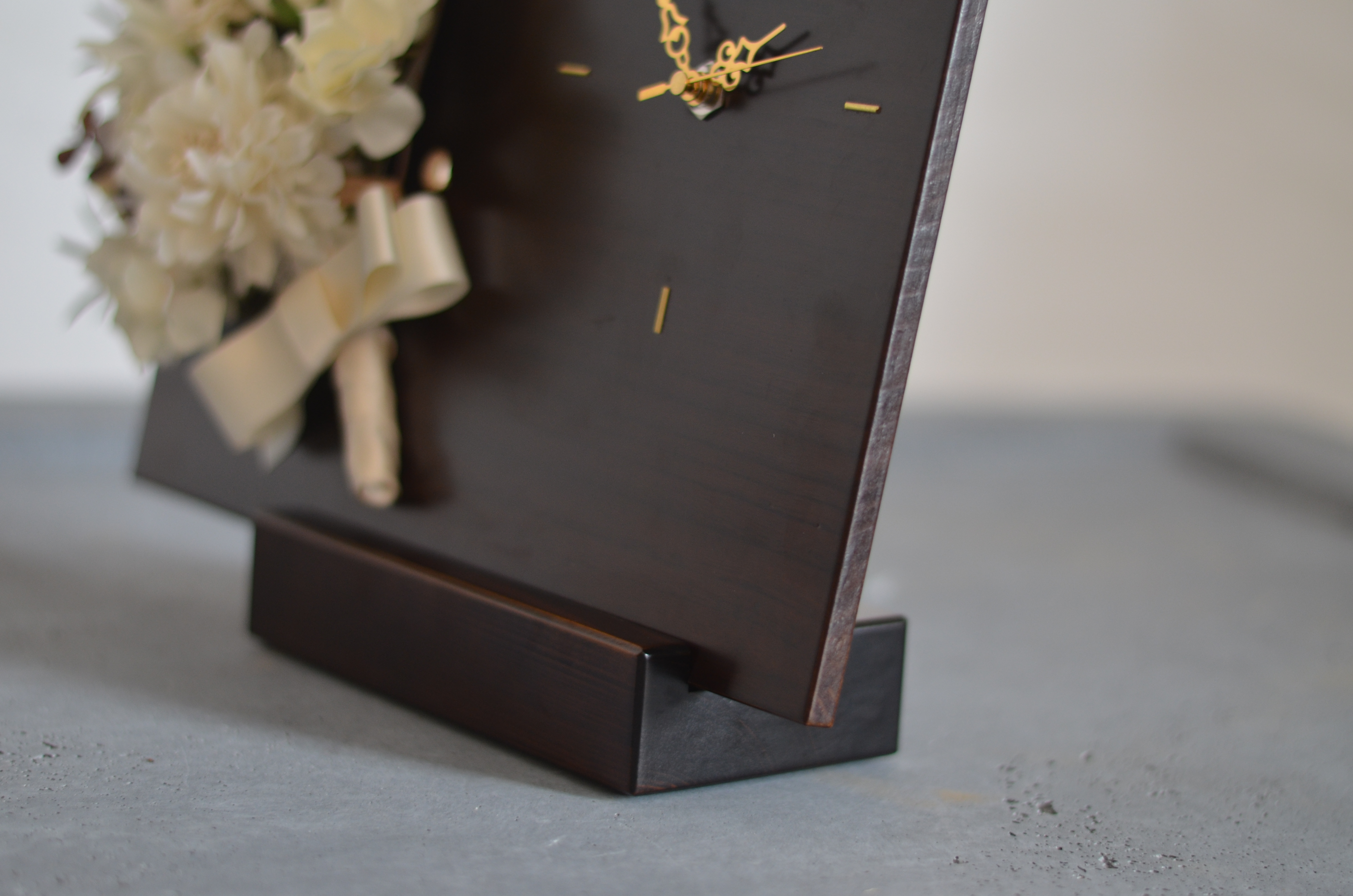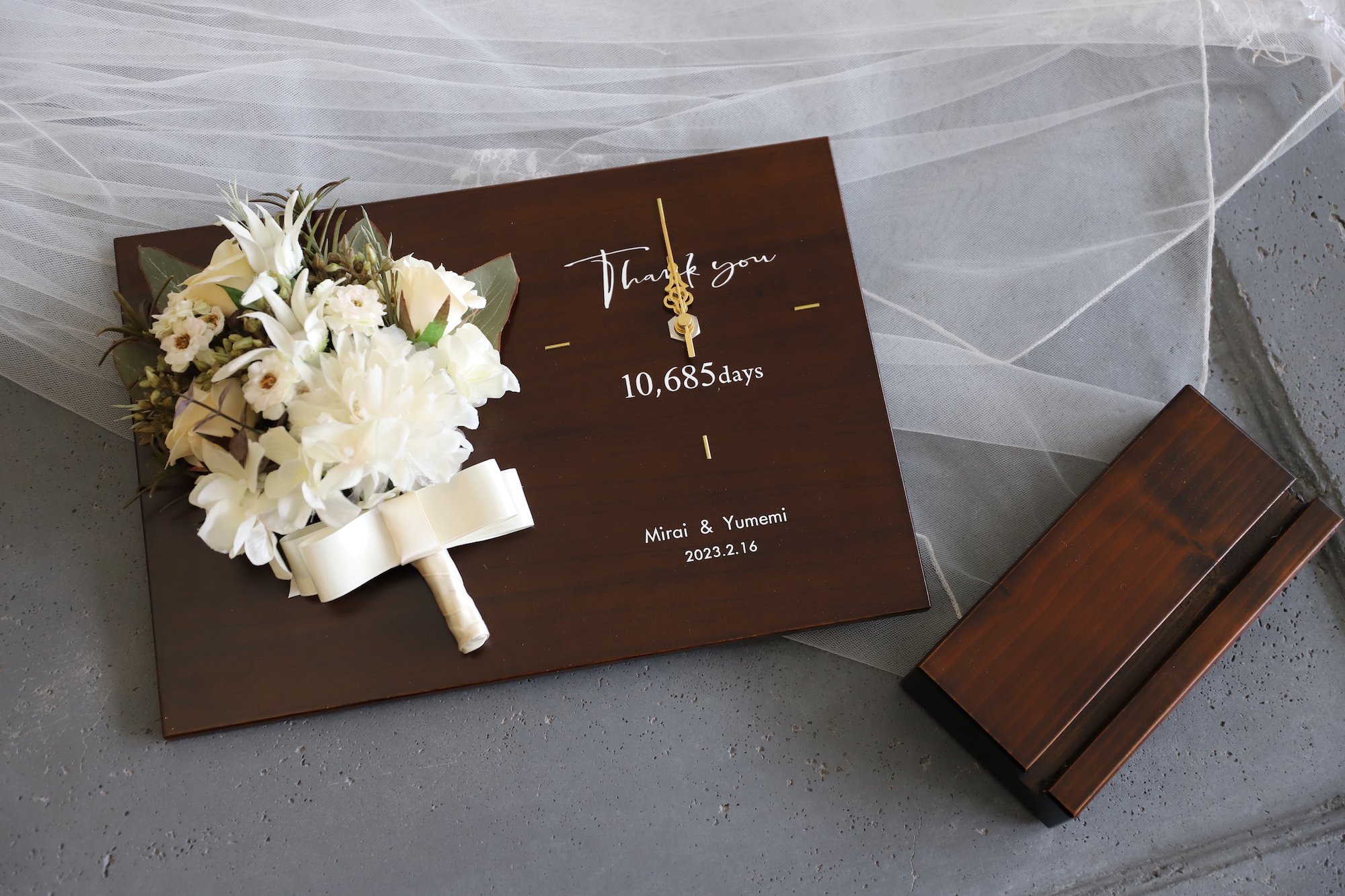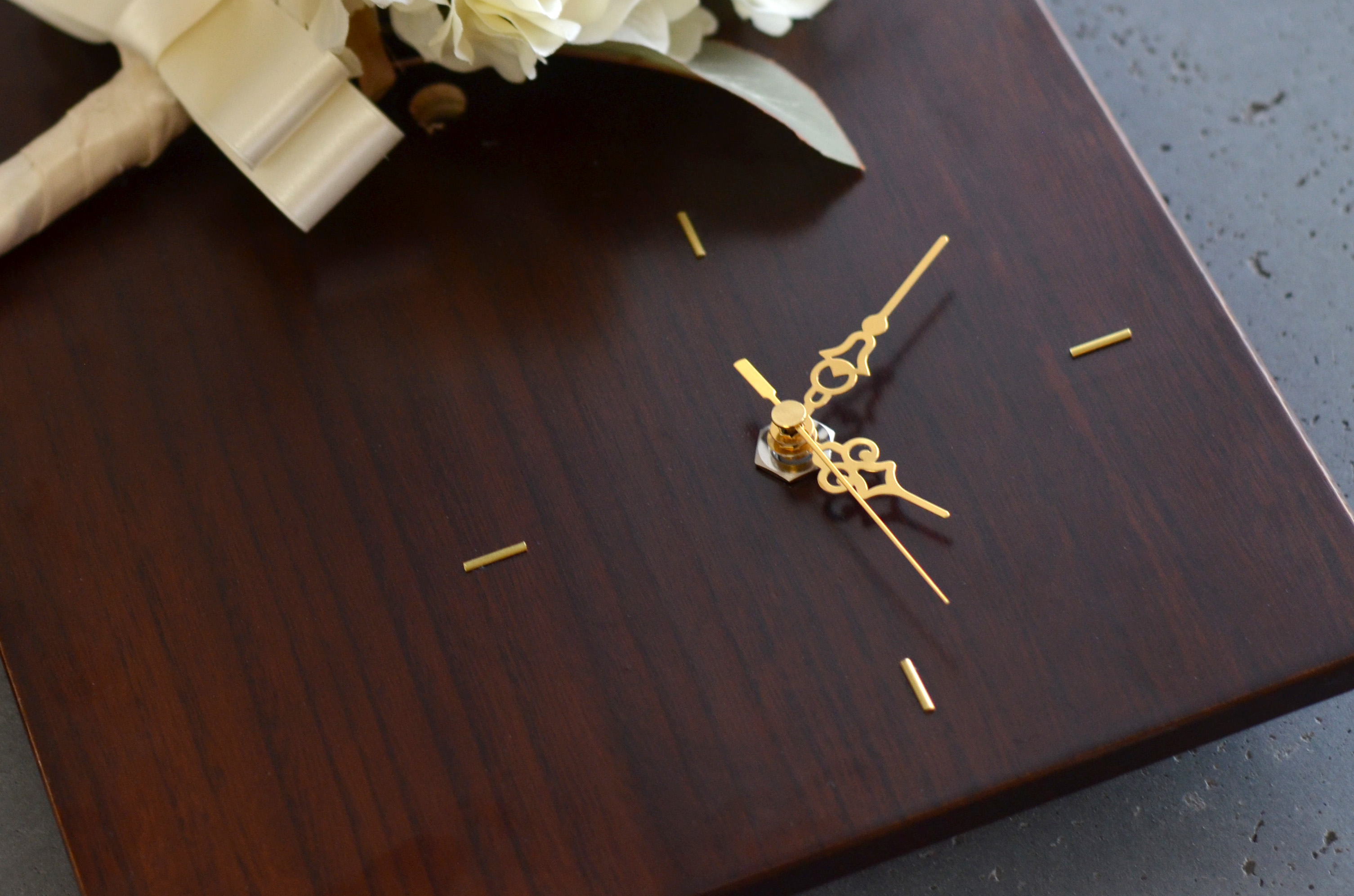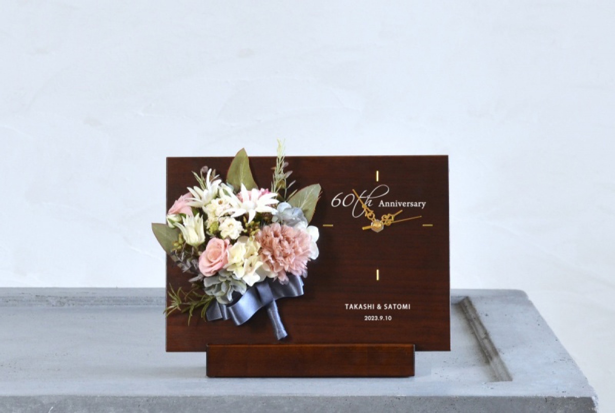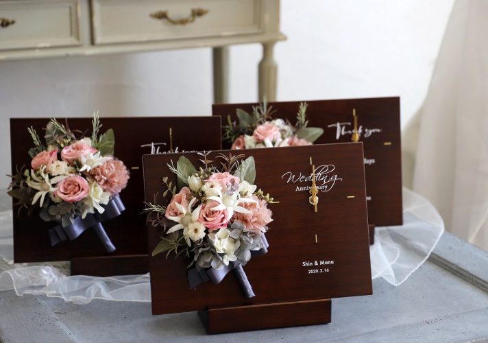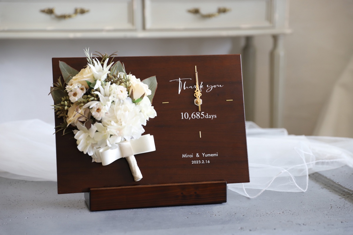 木製パネルとブーケの時計/プレミアム・スノー