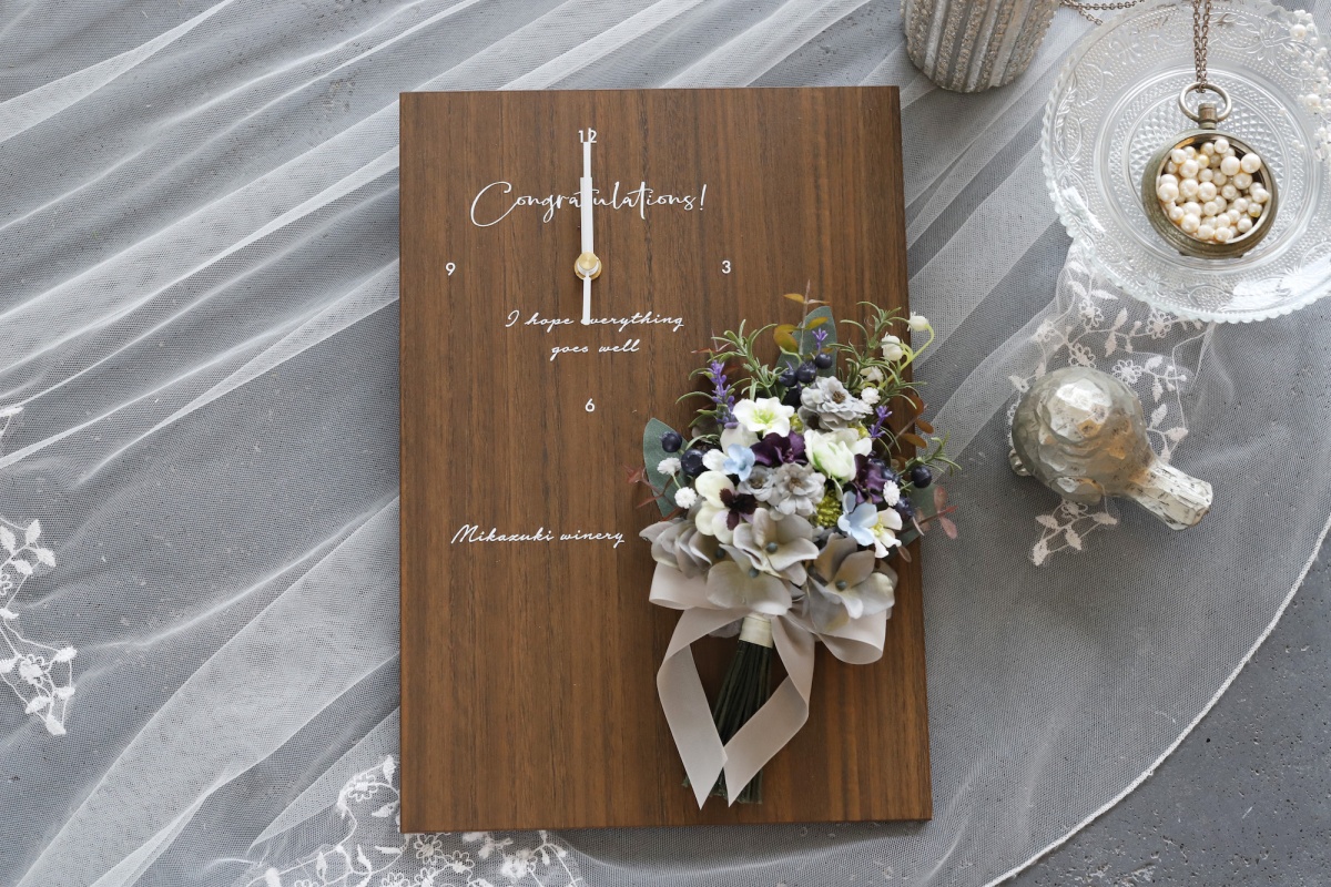 ミニブーケと木製パネルの花時計/ブラウン・ココア