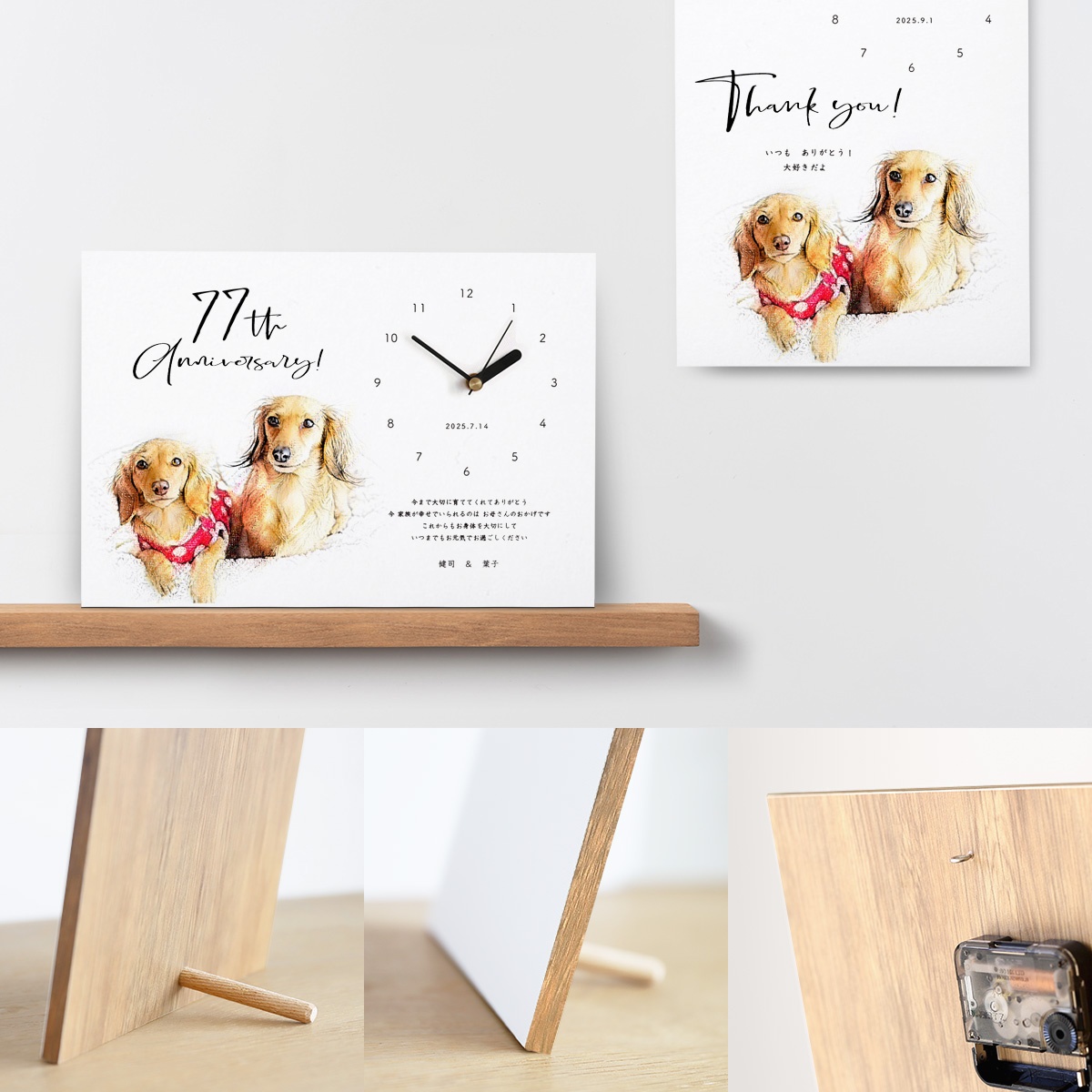 喜寿や古希の祝いに!ペットのイラスト付き時計