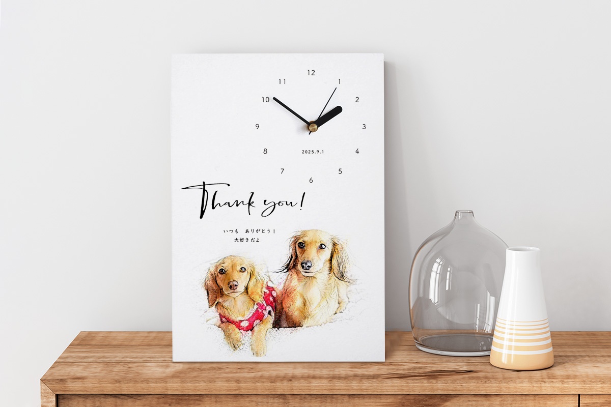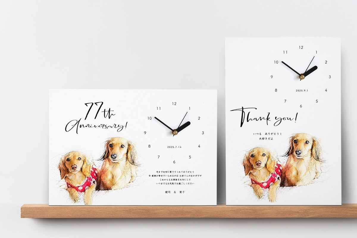 古希(70歳)や喜寿(77歳)の祝いギフトに!ペットのイラスト付き時計をプレゼント