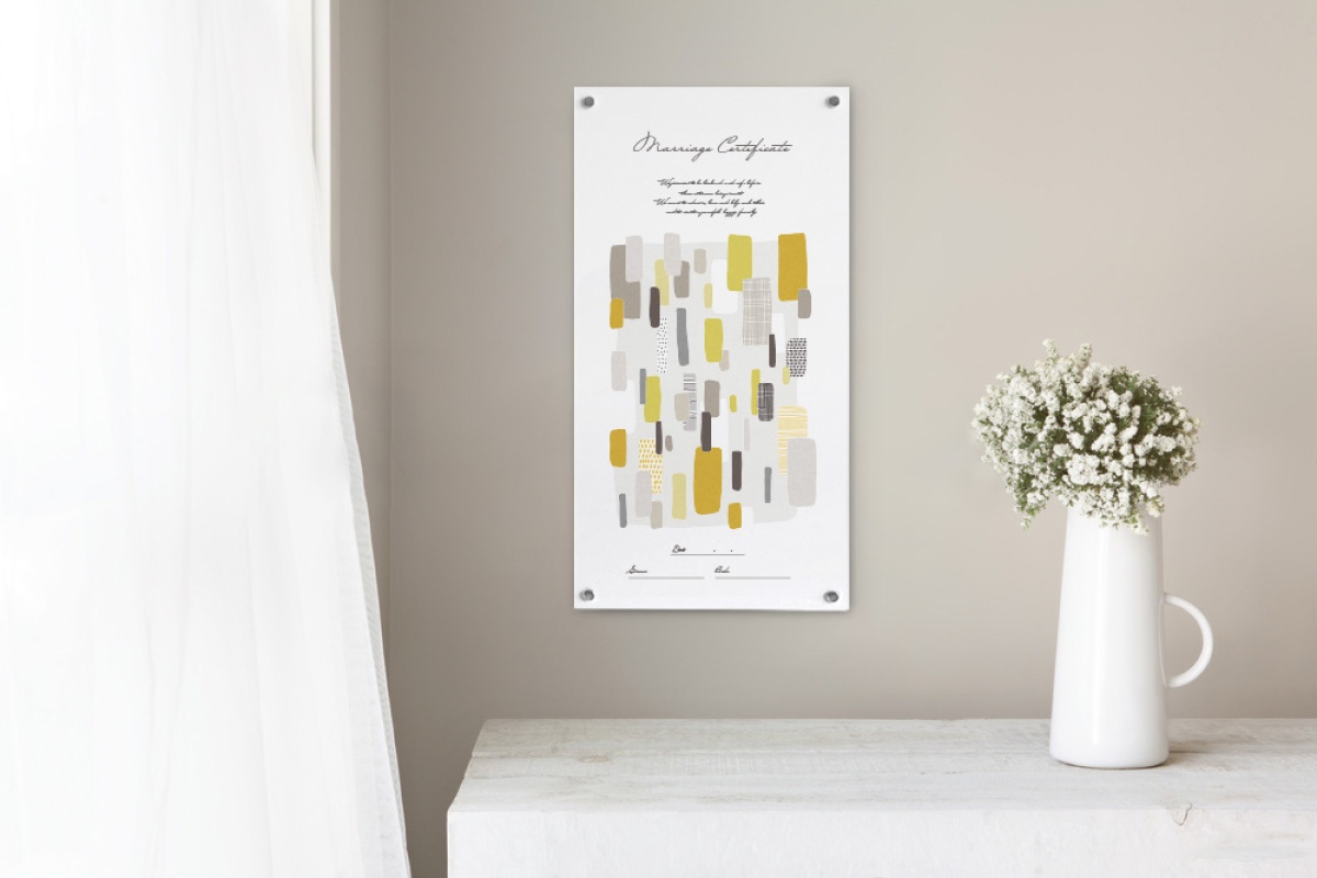 シールで作るゲスト参加型の結婚証明書・ウェディングアート/レクタングル・イエロー