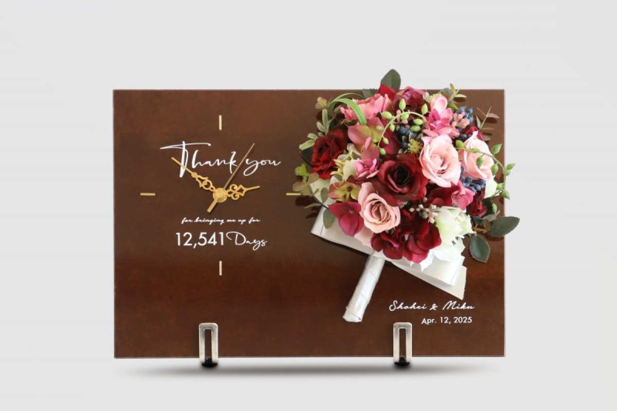 木製パネルとブーケの花時計(プレミアム還暦祝い)