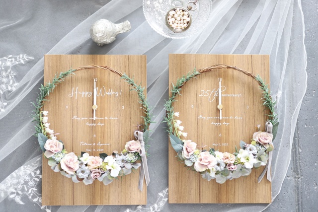 ウェディングアートは、壁掛け時計・置き時計、どちらでも使用できます。